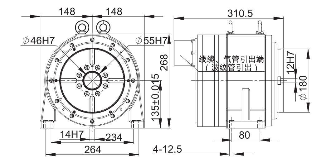 Center through hole diameter(mm) | Φ50H7/Φ46H7(without disk) |